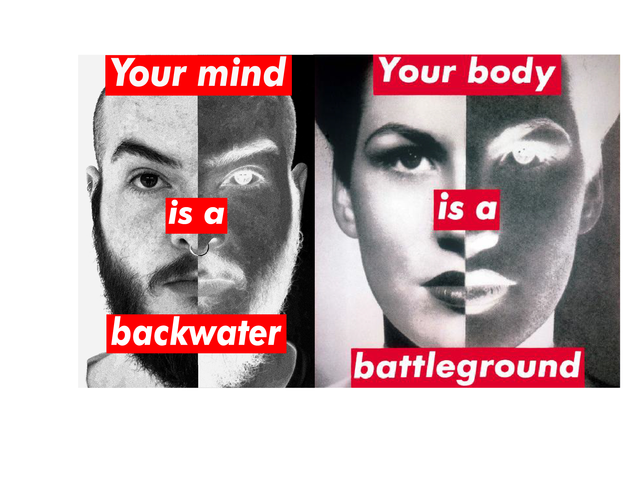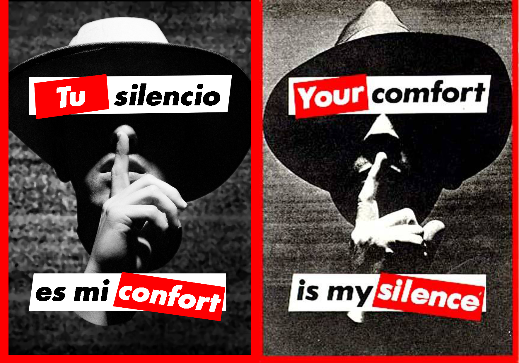 Entre los trabajos que podemos encontrar están los carteles realizados por Cristina Naranjo y Natalia Reposo, alumnas de 1º de Fotografía, Cristina Sampalo, y Javier de la flor, alumnos de 1º de Gráfica Publicitaria. También han participado los alumnos y alumnas de Tipografía de 1º y Diseño Editorial de 2º de Estudios Superiores Jesús López, Rafa Trujillo, Enrique Vera, Denis Rodríguez, Diego Guerra, Marina López, Matilde Jaime y Fernando Ayala con carteles en homenaje a una artista feminista de finales de los 70, Barbara Kruger.