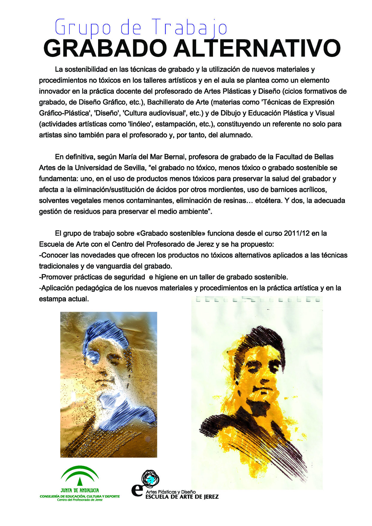 Participación de la Escuela de Arte de Jerez en la Feria de la Ciencia 2015: El Grabado Alternativo como técnica sostenible y no tóxica.